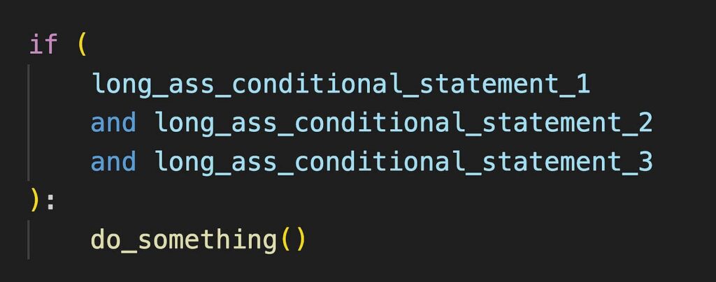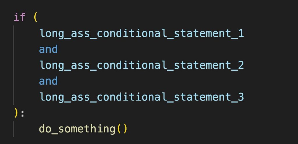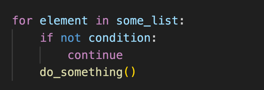 在生產級別的程式碼中,可能會有更多的縮排層次,而如果層次太多,我們的程式碼就會變得令人煩躁且難以閱讀。因此,這個技巧讓我們能夠使程式碼稍微整潔一些,更易於人類閱讀,