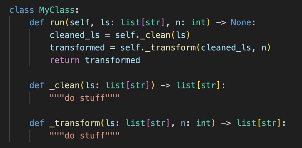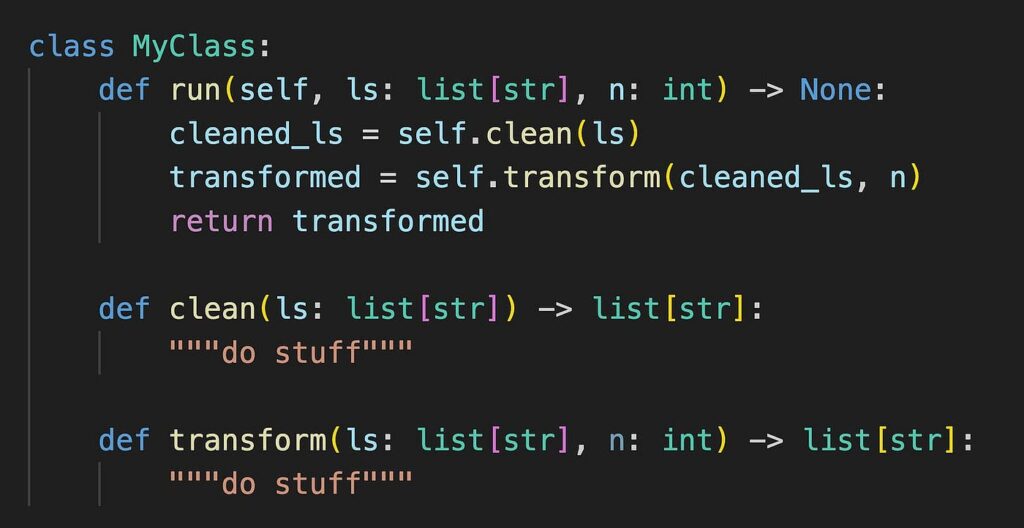 這是一個範例類別。在這裡,run 方法使用了其他方法 clean 和 transform