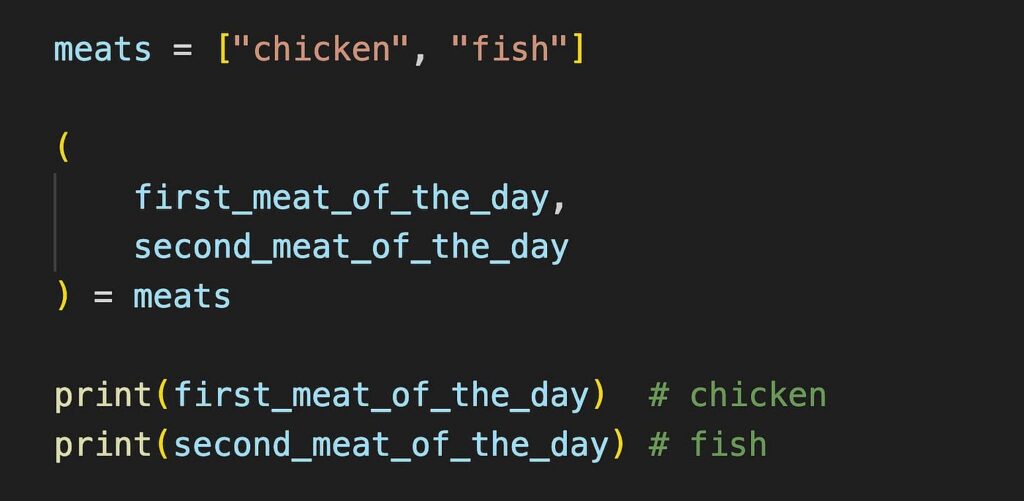注意到這樣一來,我們的元組解包可以容納更長(且更具描述性)的變數名稱