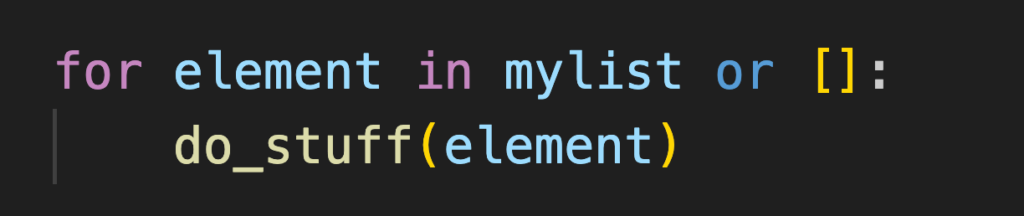 這個問題的一個缺點是它無法防止 mylist 為 None——如果 mylist 恰好是 None,我們會得到一個錯誤,因為無法遍歷 None。