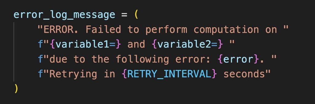 生產級的字串通常由於其冗長而無法放入一行中。因此,我們使用括號將它們組合起來。