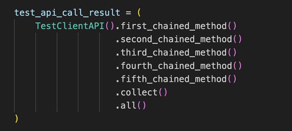 在生產級別的程式碼中,方法名稱大多數時候會更長,並且我們會將更多的方法鏈接在一起。